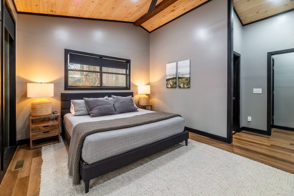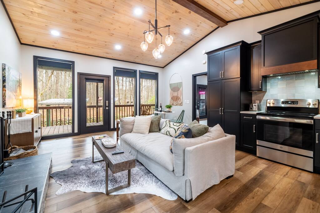 Discover Hideaway Haven, a romantic mountain retreat blending rustic allure with modern luxuries, ideal for couples seeking relaxation amidst enchanting nature. Perfect for couples, honeymooners, and weekend getaways. Why Guests Love It: 1. Ultra-private hot tub under string lights 🌌 2. Peaceful wooded setting with creek + swing 🏞️ 3. Thoughtful host + responsive communication 💬
