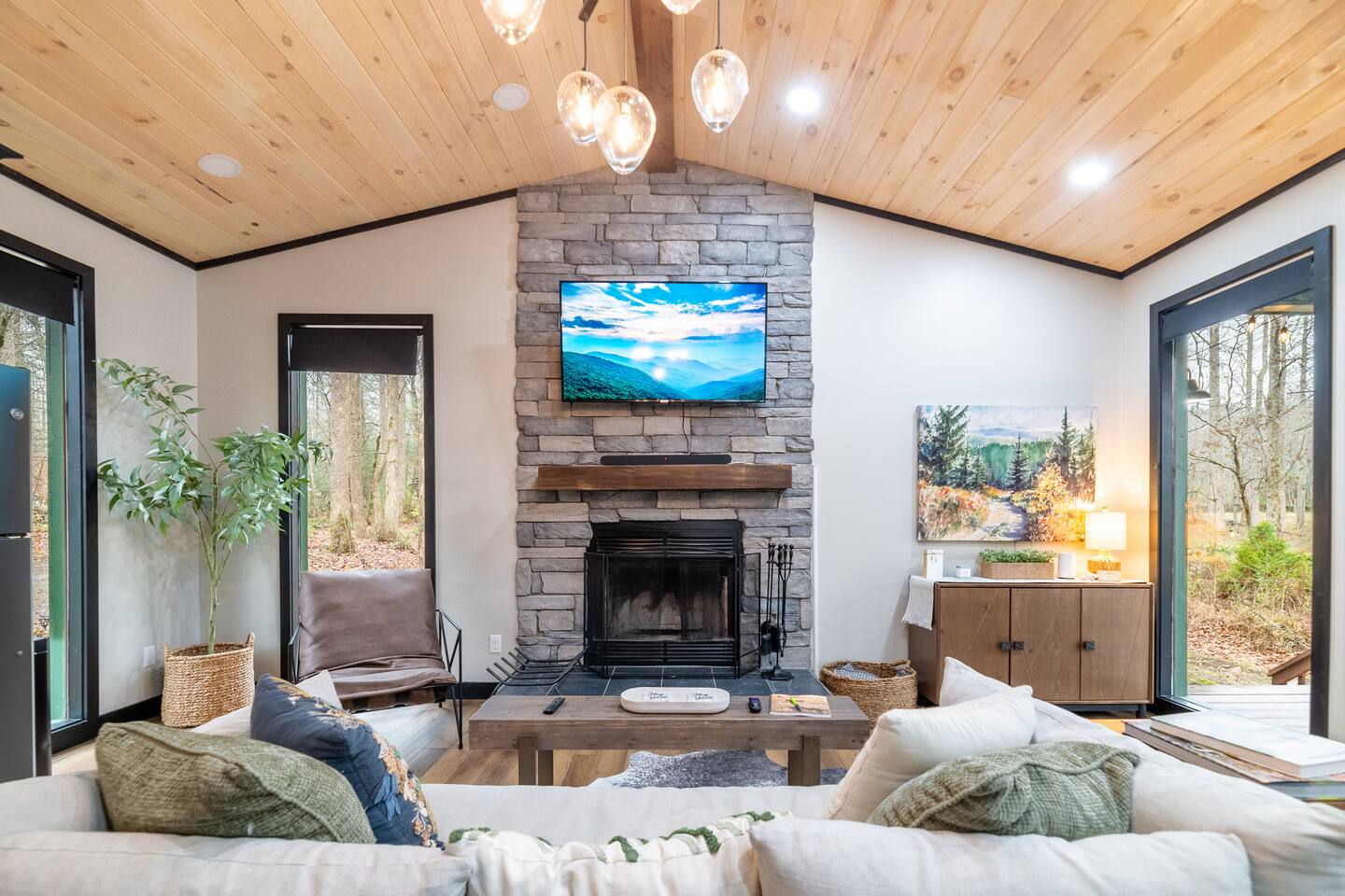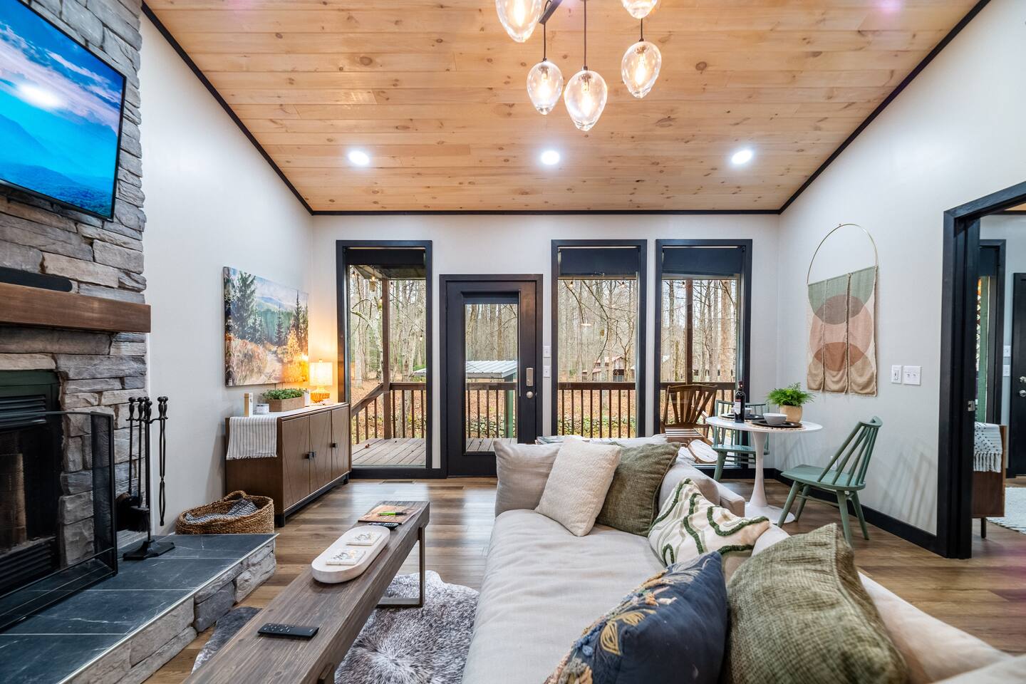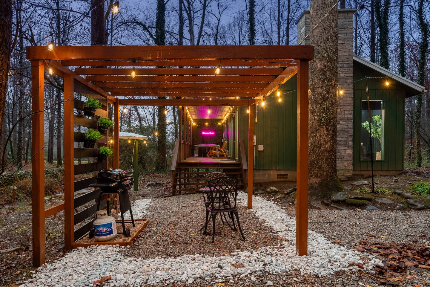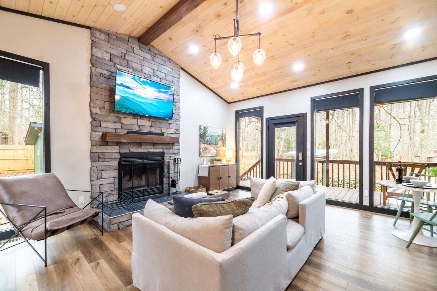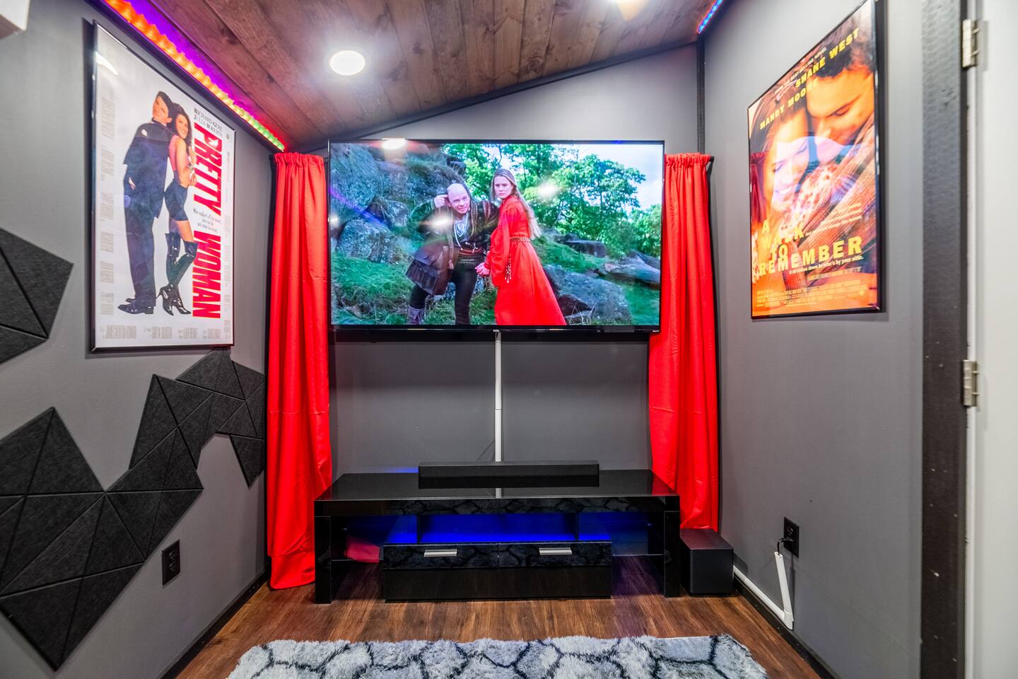 Welcome to Hideaway Haven, your perfect couple's retreat, tucked into the enchanting wooded landscape. This 1B/1B cabin combines rustic elements with modern comforts, offering a luxurious escape. Whether it's lounging in the private hot tub or enjoying a movie night in theater room, this home promises relaxation. Located just 16 miles from Gatlinburg and the Smoky Mountains, you're both close to adventure and immersed in tranquility. Experience a getaway like no other and book your slice of paradise today! KEY FEATURES: ✔Cozy open-concept living space with fireplace ✔Sleek, fully-equipped kitchen with all essentials and appliances ✔Inviting king-sized bed with soft, luxurious bedding ✔Modern bathroom with a refreshing walk-in shower (shampoo, conditioner, and body wash provided) ✔Outdoor deck featuring a soothing hot tub and seating ✔Private detached movie theater with large TV and seating ✔Expansive yard with a charming swing overlooking the creek ✔BBQ grill, fire pit and cornhole for your outdoor activities LOCATION: *16 Miles to Downtown Gatlinburg *23 Miles to Pigeon Forge *18 Miles to the entrance of Smoky Mountain National Park **Please Note** ▪️Starter essentials have been provided for you (1 roll of toilet paper, 1 roll of paper towels, hand soap, dish soap, dishwasher pods, coffee, and tea) ▪️Bring propane for the BBQ grill; we are unable to monitor propane tanks left at the cabin ▪️Smart TVs are equipped with streaming apps; bring your own login and password **Neighborhood** Nestled in a serene wooded area, Hideaway Haven places you near fantastic attractions without hindering your peace. Spend a day exploring Gatlinburg, Pigeon Forge, or hiking in the magnificent Smoky Mountains. Afterward, retreat back to your cabin to unwind beneath the stars or enjoy a movie night in the theater room. Embrace the best of both worlds—adventure and relaxation—right here in your mountain escape.