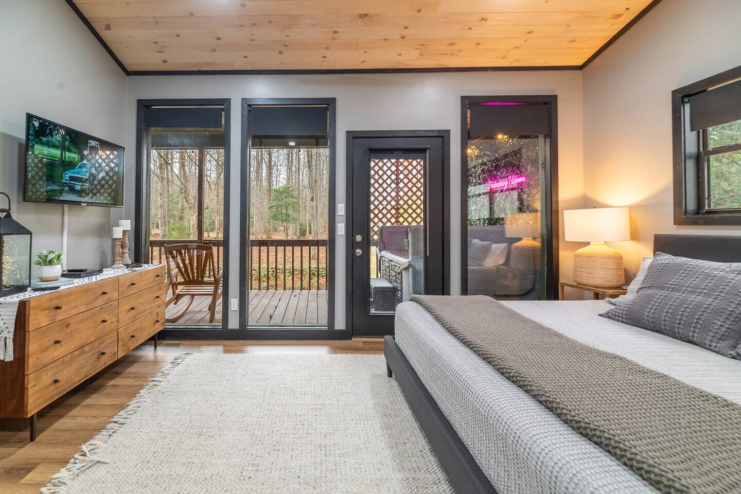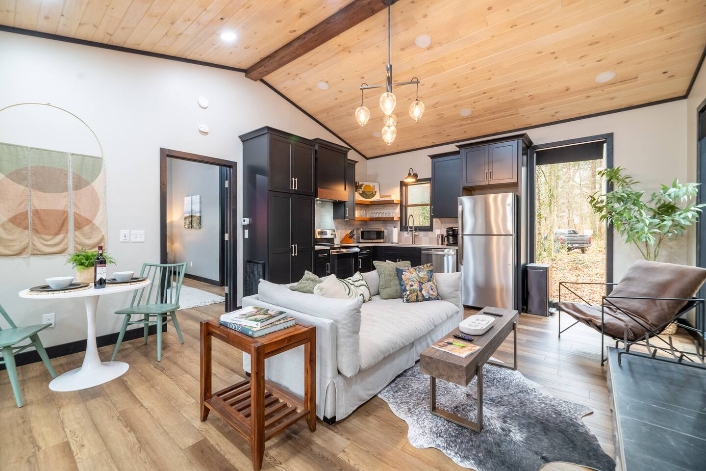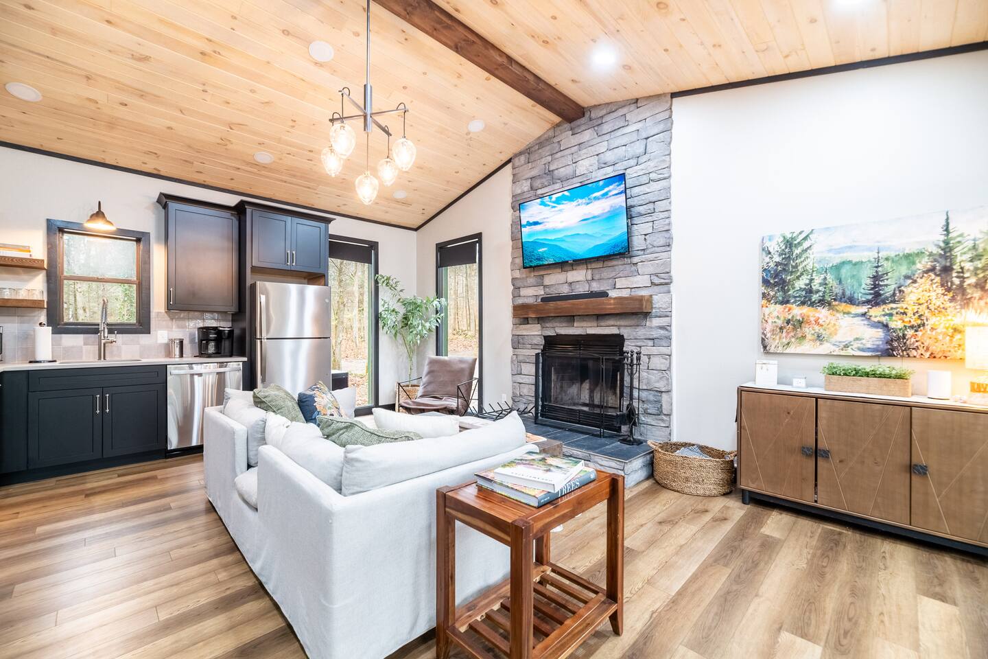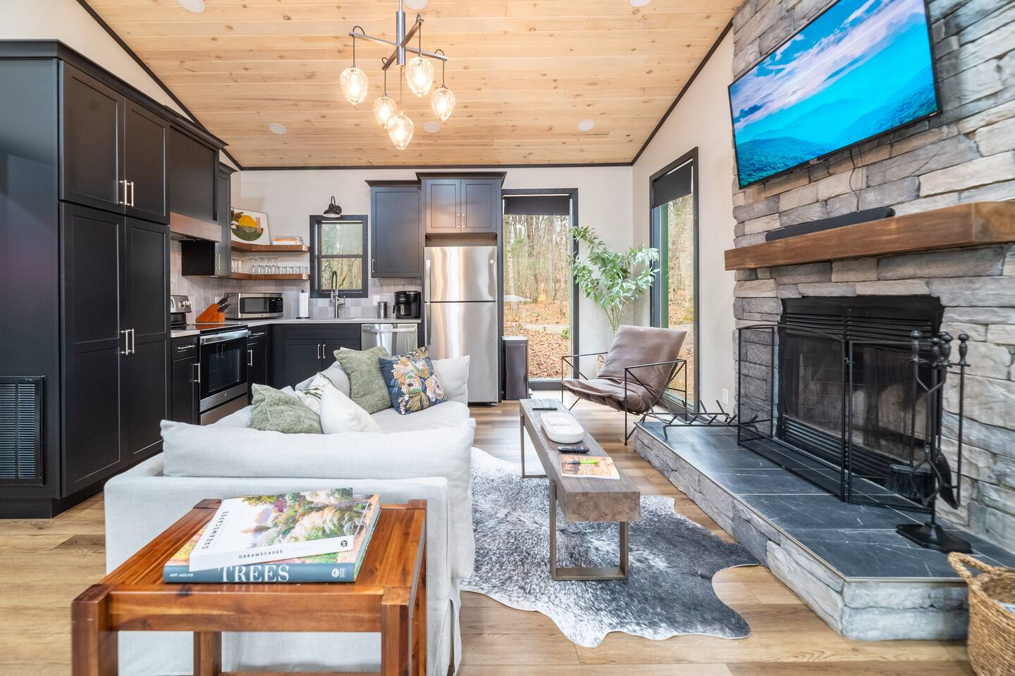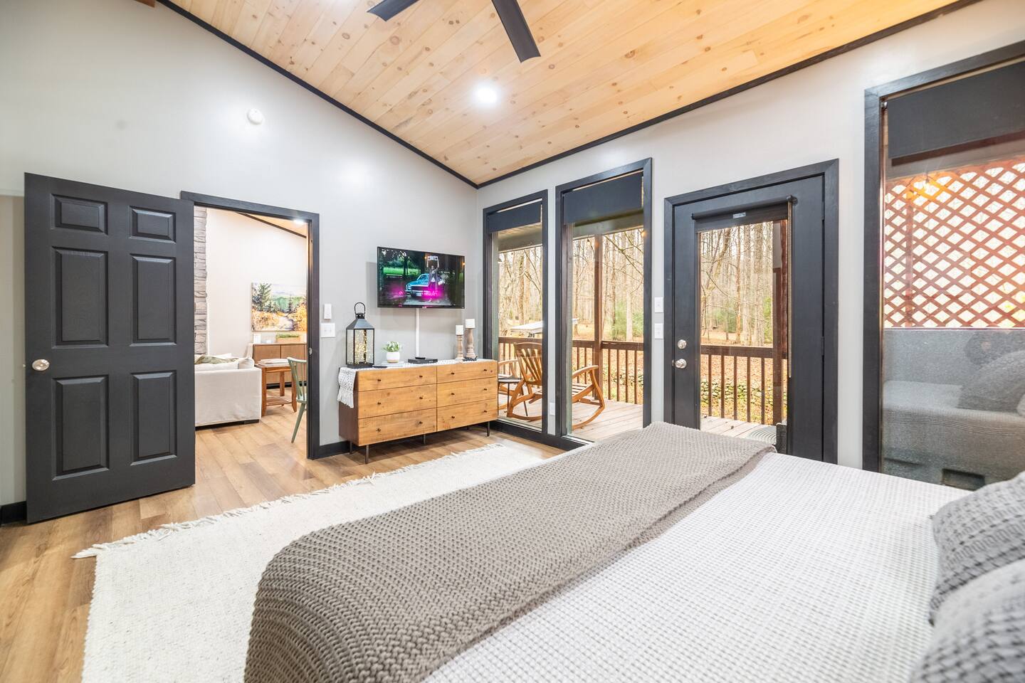 Welcome to Hideaway Haven, your perfect couple's retreat, tucked into the enchanting wooded landscape. This 1B/1B cabin combines rustic elements with modern comforts, offering a luxurious escape. Whether it's lounging in the private hot tub or enjoying a movie night in theater room, this home promises relaxation. Located just 16 miles from Gatlinburg and the Smoky Mountains, you're both close to adventure and immersed in tranquility. Experience a getaway like no other and book your slice of paradise today! KEY FEATURES: ✔Cozy open-concept living space with fireplace ✔Sleek, fully-equipped kitchen with all essentials and appliances ✔Inviting king-sized bed with soft, luxurious bedding ✔Modern bathroom with a refreshing walk-in shower (shampoo, conditioner, and body wash provided) ✔Outdoor deck featuring a soothing hot tub and seating ✔Private detached movie theater with large TV and seating ✔Expansive yard with a charming swing overlooking the creek ✔BBQ grill, fire pit and cornhole for your outdoor activities LOCATION: *16 Miles to Downtown Gatlinburg *23 Miles to Pigeon Forge *18 Miles to the entrance of Smoky Mountain National Park **Please Note** ▪️Starter essentials have been provided for you (1 roll of toilet paper, 1 roll of paper towels, hand soap, dish soap, dishwasher pods, coffee, and tea) ▪️Bring propane for the BBQ grill; we are unable to monitor propane tanks left at the cabin ▪️Smart TVs are equipped with streaming apps; bring your own login and password **Neighborhood** Nestled in a serene wooded area, Hideaway Haven places you near fantastic attractions without hindering your peace. Spend a day exploring Gatlinburg, Pigeon Forge, or hiking in the magnificent Smoky Mountains. Afterward, retreat back to your cabin to unwind beneath the stars or enjoy a movie night in the theater room. Embrace the best of both worlds—adventure and relaxation—right here in your mountain escape.