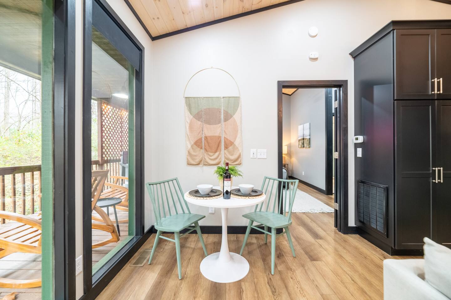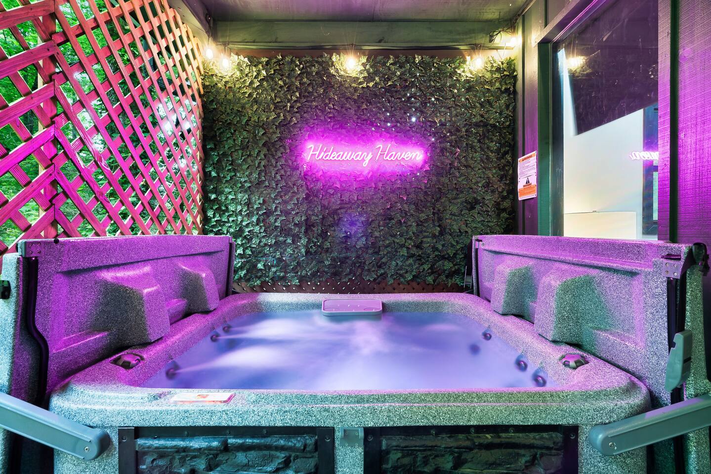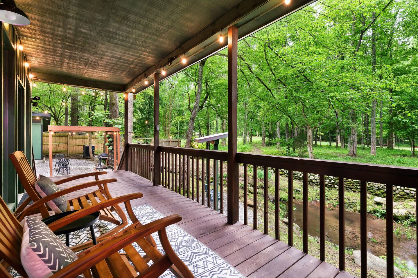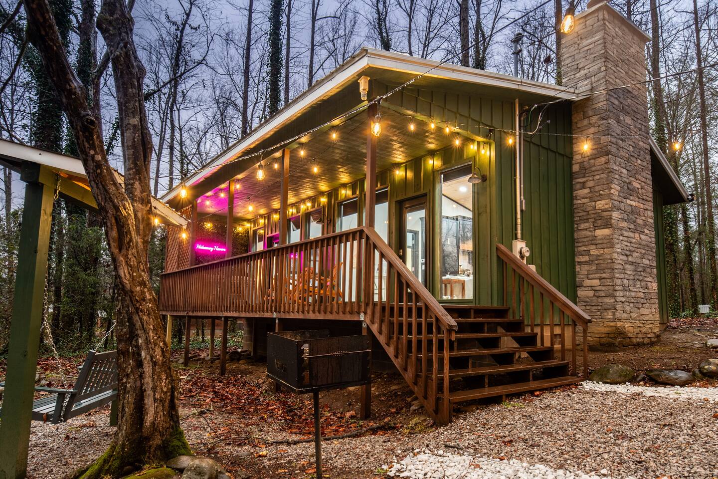 Discover Hideaway Haven, a romantic mountain retreat blending rustic allure with modern luxuries, ideal for couples seeking relaxation amidst enchanting nature. Perfect for couples, honeymooners, and weekend getaways. Why Guests Love It: 1. Ultra-private hot tub under string lights 🌌 2. Peaceful wooded setting with creek + swing 🏞️ 3. Thoughtful host + responsive communication 💬
