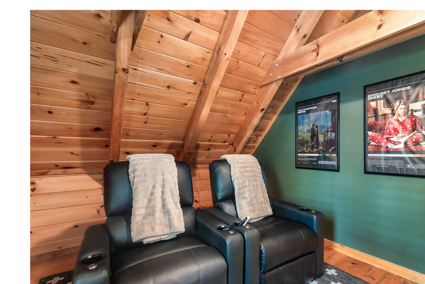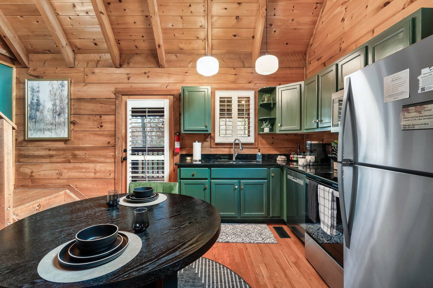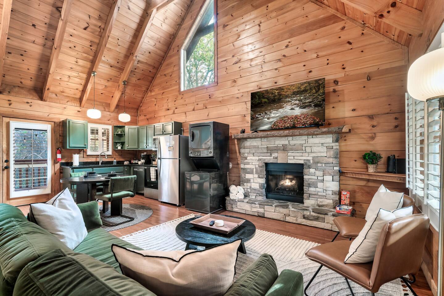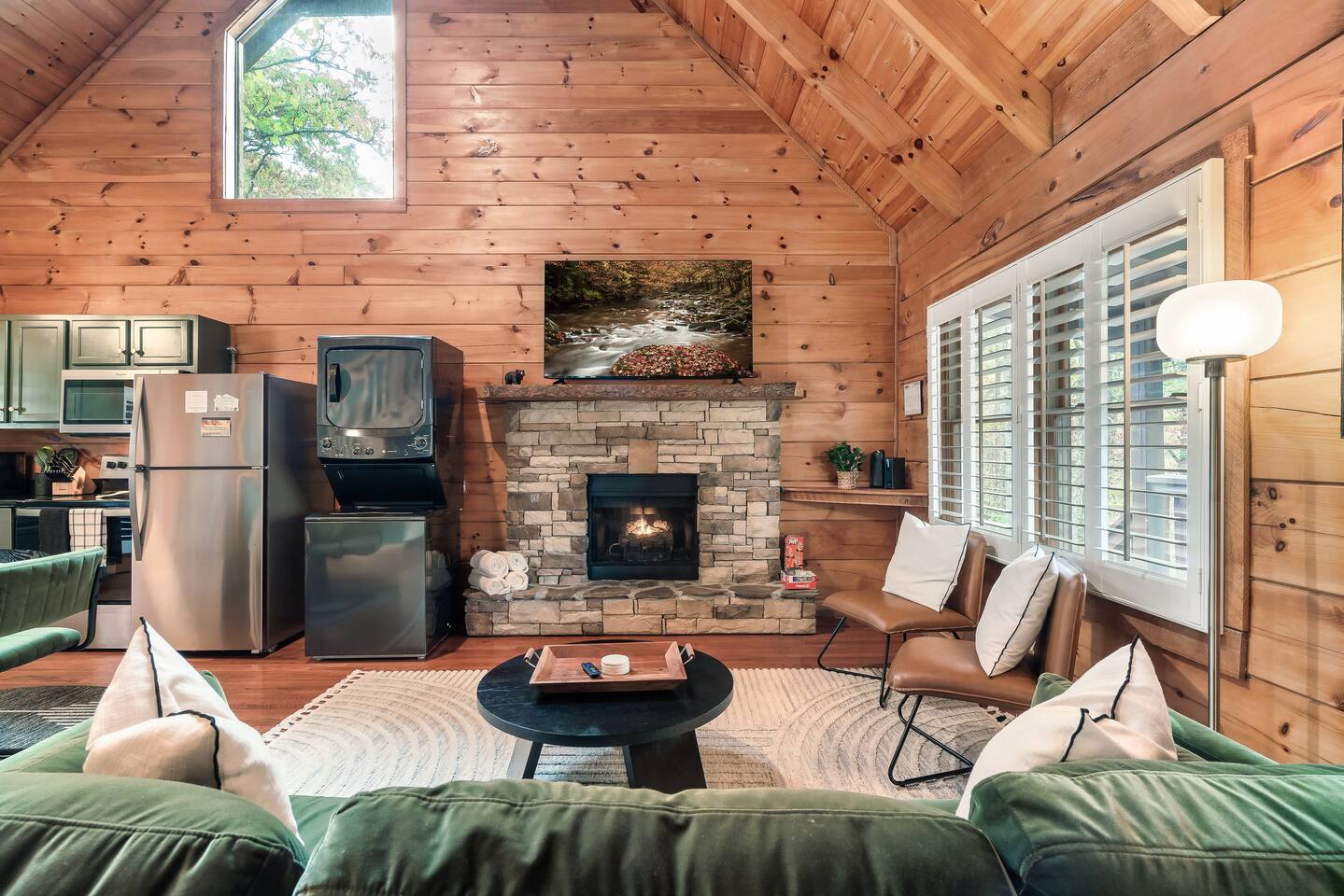 Discover bliss in this cozy, modern 1 bedroom/1 bathroom cabin nestled near the Great Smoky Mountains. Whether you're snuggled up in the private loft theater or unwinding in the inviting outdoor hot tub, every moment here offers relaxation and romance. Just a short drive to local attractions, this retreat blends tranquility with convenience. Don't miss your chance for an unforgettable getaway that rejuvenates and inspires—reserve today! KEY FEATURES: ✔ Inviting living area with a luxe couch, gas fireplace, and 65" smart TV ✔ Fully equipped kitchen with a microwave, oven, electric tea kettle, and Keurig dual coffee maker ✔ Easily accessible washer and dryer ✔ King bedroom featuring a soaking tub, smart TV, full-length mirror, and luggage rack ✔ Loft theater with leather reclining chairs, 65" TV, and popcorn machine ✔ Spacious back deck with a hot tub and serene seating ✔ Outdoor park-style grill for all of your grilling needs ✔ Wood-burning fire pit and hanging swing **Please Note** ▪️Starter essentials items have been provided for you (1 roll of toilet paper, 1 roll of paper towels, hand soap, dish soap, dishwasher pods, coffee, and tea) ▪️Smart TVs are equipped with streaming apps; bring your login and password **Neighborhood** Embrace adventure with nearby attractions like Dollywood and Gatlinburg, or explore the Great Smoky Mountains for hiking and breathtaking vistas. Enjoy the local charm, discover unique dining experiences, and create memorable adventures. Dive into nature and culture just moments away from your serene retreat. Book your stay and immerse yourself in the wonders of this enchanting locale!