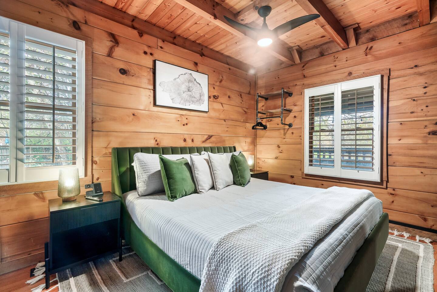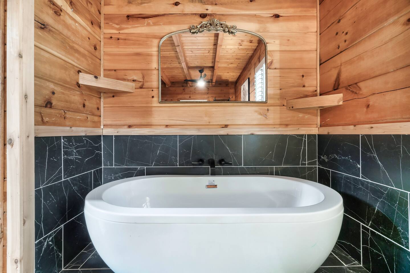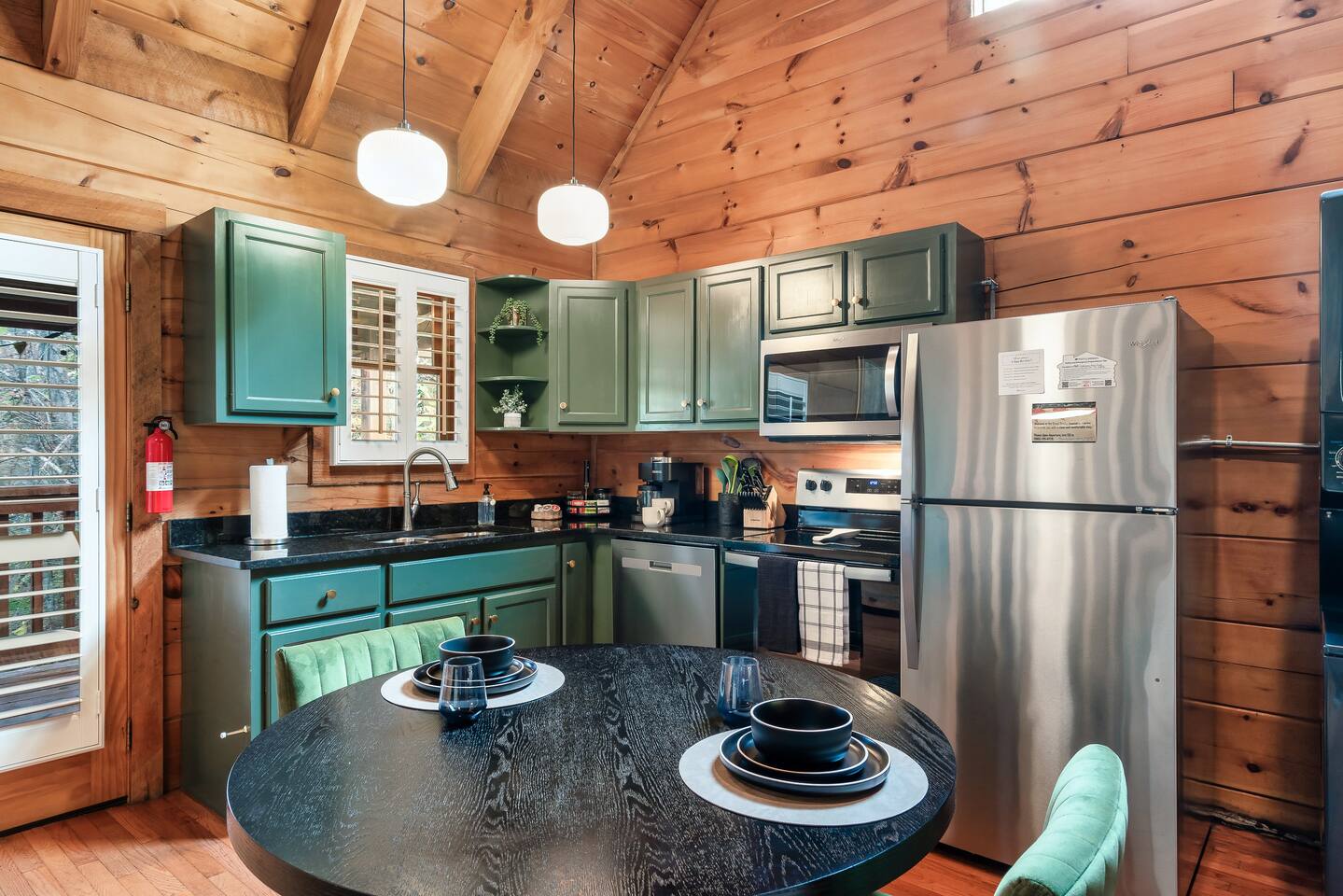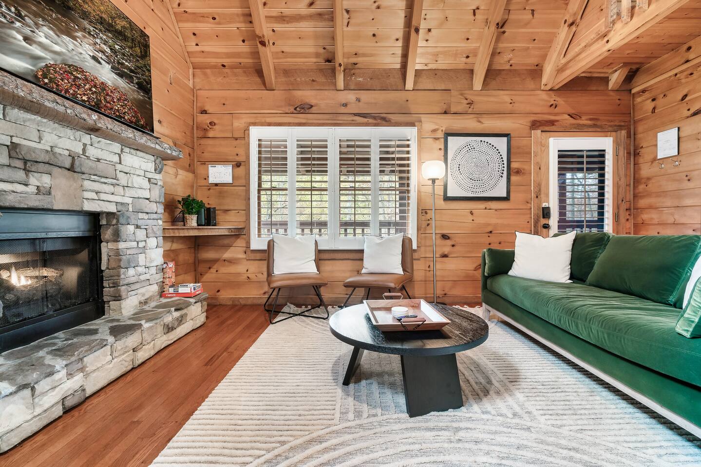 Discover bliss in this cozy, modern 1 bedroom/1 bathroom cabin nestled near the Great Smoky Mountains. Whether you're snuggled up in the private loft theater or unwinding in the inviting outdoor hot tub, every moment here offers relaxation and romance. Just a short drive to local attractions, this retreat blends tranquility with convenience. Don't miss your chance for an unforgettable getaway that rejuvenates and inspires—reserve today! KEY FEATURES: ✔ Inviting living area with a luxe couch, gas fireplace, and 65" smart TV ✔ Fully equipped kitchen with a microwave, oven, electric tea kettle, and Keurig dual coffee maker ✔ Easily accessible washer and dryer ✔ King bedroom featuring a soaking tub, smart TV, full-length mirror, and luggage rack ✔ Loft theater with leather reclining chairs, 65" TV, and popcorn machine ✔ Spacious back deck with a hot tub and serene seating ✔ Outdoor park-style grill for all of your grilling needs ✔ Wood-burning fire pit and hanging swing **Please Note** ▪️Starter essentials items have been provided for you (1 roll of toilet paper, 1 roll of paper towels, hand soap, dish soap, dishwasher pods, coffee, and tea) ▪️Smart TVs are equipped with streaming apps; bring your login and password **Neighborhood** Embrace adventure with nearby attractions like Dollywood and Gatlinburg, or explore the Great Smoky Mountains for hiking and breathtaking vistas. Enjoy the local charm, discover unique dining experiences, and create memorable adventures. Dive into nature and culture just moments away from your serene retreat. Book your stay and immerse yourself in the wonders of this enchanting locale!