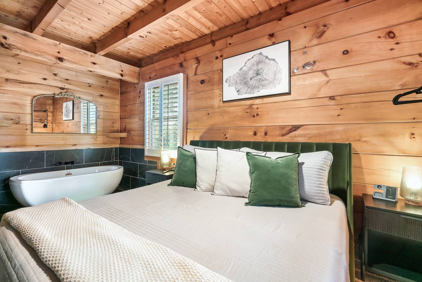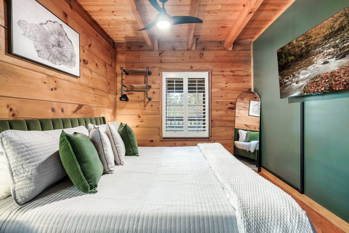 Treat yourself to a clean, peaceful, spa-like escape in this modern-yet-cozy 1BR cabin just minutes from Pigeon Forge Parkway. Unwind in the private soaking tub, soak in the hot tub, and catch a movie in your own theater loft. Designed for couples looking to relax in style. 👉 Ideal for couples, honeymooners, or weekend getaways. Conveniently located: 📍3 miles to the Parkway 📍20 minutes to Dollywood 📍30 minutes to Gatlinburg 📍Near the Great Smoky Mountains National Park.